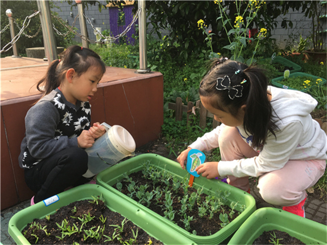 看着自己种下的种子经过发芽,出土,长高。孩子们的脸上露出快乐的笑容,我们约定等豌豆苗再长高一点,大家一起品尝幸福的味道。
