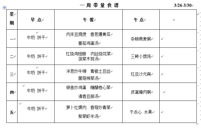 第五周食谱
