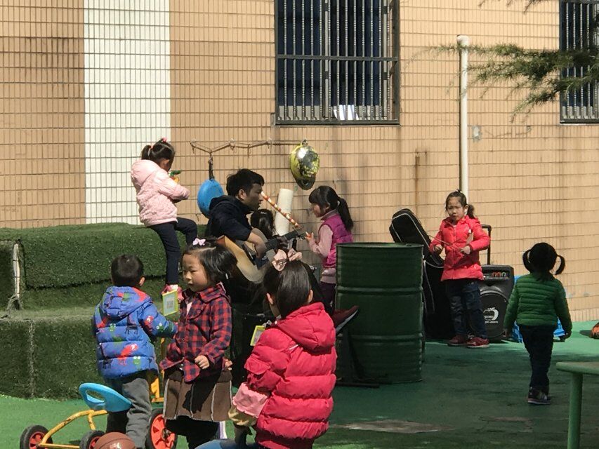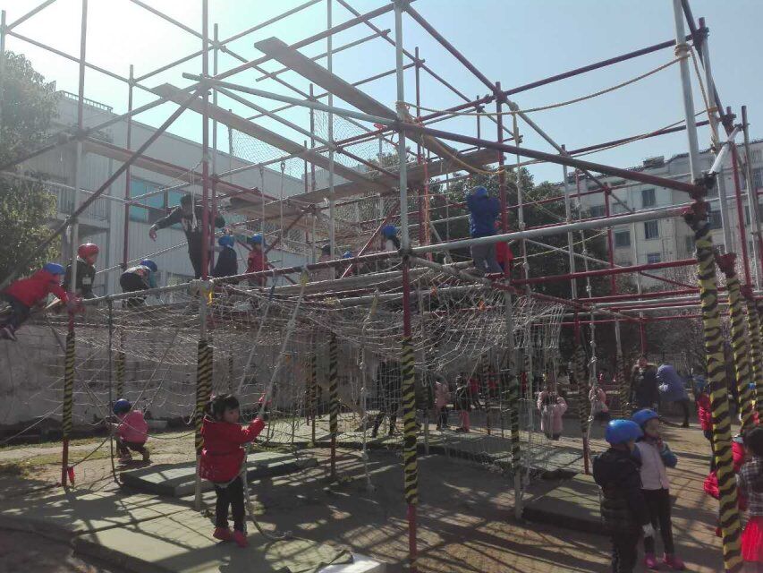 来到银河幼儿园,只见园内的老师和孩子们正随着欢快的节奏自由舞蹈。哦,原来是运动前的热身活动,一会儿户外游戏活动正式开始啦!该园巧妙利用幼儿园已有环境扩大幼儿游戏空间,将操场变为孩子的“游乐园”,满足幼儿各种游戏活动,如在幼儿园大树上设置秋千、攀登绳、攀爬网、吊床等。同时还为幼儿提供了丰富的、变废为宝的低结构材料,诸如竹竿、板凳、油桶、轮胎等,幼儿对这些新玩意兴趣极高,玩得不亦乐乎。教师们详细制定每天的户外活动计划,充分注重孩子自主性、创造性的发挥。走、跑、跳跃、投掷、钻、爬、平衡等一些基本动作的练习也在游戏中得到保证,幼儿根据自己的兴趣需要自由选择游戏内容,自由创编游戏玩法,真正体现了游戏的娱乐性、教育性功能。孩子们在各游戏区尽情游戏,他们有按照自己的想法,利用低结构玩具搭建建筑物;在涂鸦区,他们又俨然成了涂鸦大师,画板、墙面、瓶子、树枝都成了作画载体;在角色区,有的孩子在摘菜、炒菜,体验做饭的乐趣;沙池里的孩子们个个都沉浸在忘我的世界里尽情享乐;在攀爬挑战区,一阵阵加油声更是吸引了很多大朋友、小朋友的眼球;还有表演区,这里有经典的吉他演奏和好看的舞蹈表演;除此之外,还有足球队、养殖区等等。孩子们在愉快的游戏中,尽情绽放自我,整个幼儿园呈现出一片欢腾景象,构成了一幅热闹、快乐、和谐的美丽画卷。游戏结束后,参观的老师带着疑问和思考与王园长进行了面对面的交流学习。