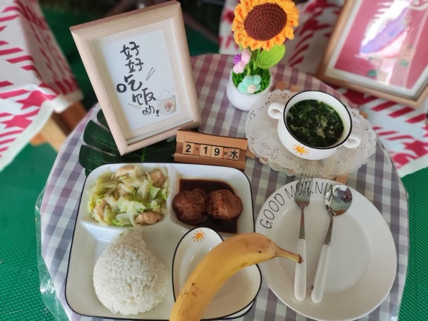 三 | 牛奶 自主饼干 | 五常白米饭 油面筋塞肉 大烧卷芯菜 芙蓉鲜蔬汤 | 香蕉 百合山芋羹 | |